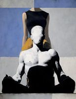 Stap in een wereld waar abstractie en menselijke vorm samenkomen in dit opvallende hedendaagse kunstwerk. Dit werk combineert op meesterlijke wijze figuratieve en abstracte elementen, met een gezichtsloze, gespierde figuur op de voorgrond, met een tweede, elegant geklede figuur erachter. Het spel van licht en schaduw over de lichamen…