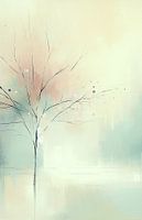 Impressies van een lentedag. Schilderachtig en abstract gerealiseerd. Een betoverende boom met de eerste knoppen. Moderne gemengde techniek met acrylverf.