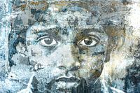 INNOCENCE is een mixed art portret van een meisje en een afbladderende blauwe muur. Het zwart wit van het portret staat in sterk contrast met de koele blauwtinten van de verf. Er zit zoveel karakter in dit werk door de waanzinnige textuur van de oude muur en de emotie van het kind.