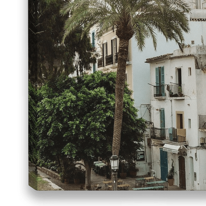 Kom helemaal in de vakantiesfeer met deze foto van de architectuur van Ibiza Old Town. De foto is gemaakt tijdens een vroege ochtendwandeling om de zonsopgang te zien in de stad Ibiza Old Town. Op de foto zie je huizen in Spaanse stijl met veel groen, zoals een grote palmboom op de voorgrond. Fan van de mediteriaanse sfeer? Dan is deze…