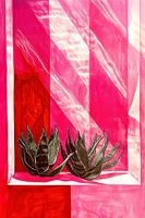 Dit kunstwerk is een prachtige aanvulling voor elk interieur en zou uitstekend passen in een woonkamer die wat levendige kleuren en energie kan gebruiken. De boho Ibiza vibes stralen van het werk af. De agave planten en de roze fuchsia muur geven het geheel een zomerse uitstraling.