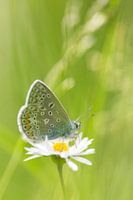 Een icarusblauwtje vlinder (icarus polyommatus) op madeliefje bloem