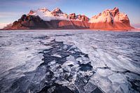 Kruiend Ijs voor de Vestrahorn, één van de bekendste bergen van IJsland.