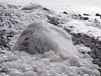 The ice-covered pebble beach near Ahrenshoop, Darß peninsula, Germany.