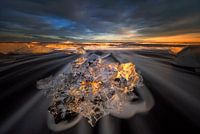 Iceberg in on Jokulsarlon black beach in sunset light, Iceland
