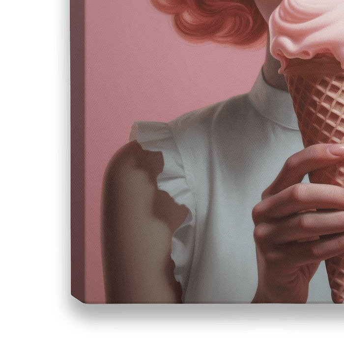 "Ice, ice, baby" portret van een meisje met een ijsje. Een vrolijk portret in pastelkleuren. Kies zelf het formaat en het materiaal voor dit speels werk en maak het helemaal passend voor jouw interieur.