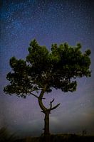 Vlakbij Camping De Kooi op Terschelling staat op een hoog duin helemaal alleen een opmerkelijke boom. Vanaf vrijwel het hele Waddeneiland is deze boom te zien. Tijdens een heldere winternacht maakte ik verschillende astrofoto's van deze boom tegen de sterrenhemel. De wind die de takken deed bewegen, voegt vanwege de langere sluitertijd een extra element toe aan de foto.