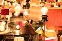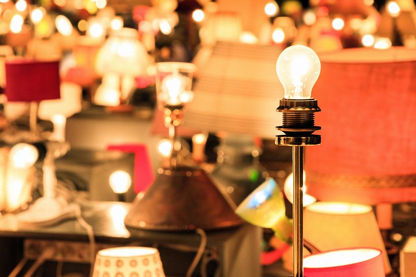 Lampje zonder lampenkamp tussen allerlei andere lampen tijdens het light festival in Amsterdam