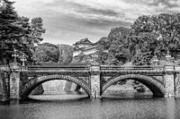 Over ‘Idyllisch Seimon Ishibashi en Nijubashi met keizerlijk paleis | monochroom’ van Melanie Viola