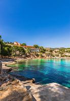 Idyllisch uitzicht op baai strand in Cala Fornells, Mallorca Spanje, eiland in de Middellandse Zee, Mallorca, Balearen, Balearen, Middellandse Zee, Spanje