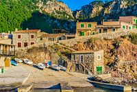 Idyllisch uitzicht op de romantische oude haven van het vissersdorp Valldemossa op Mallorca, Spanje Balearen, Mallorca, Balearen, Balearen, Middellandse Zee, Spanje