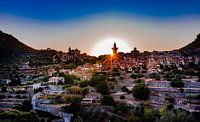 Idyllisch uitzicht op het eiland Mallorca, het mooie mediterrane dorp Valldemossa bij zonsondergang van Alex Winter