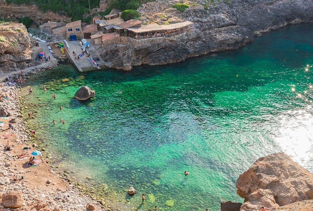 Idyllische baai met aan de kust strand Cala Deia op Mallorca, Spanje eiland van de Middellandse Zee, Mallorca, Balearen, Balearen, Middellandse Zee, Spanje