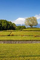 De Obuchi theeplantage in de Japanse prefectuur Shizuoka is een idyllische plek die bekend staat om zijn groene thee van hoge kwaliteit en het adembenemende uitzicht op Mount Fuji. De plantage biedt een schilderachtige achtergrond met uitgestrekte theevelden die harmonieus opgaan in het omringende landschap. Hier zie je een prachtige impressie van een bloeiende boom in de lente.