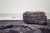 De laatste ijstijd liet grote kalksteenblokken achter, ook wel "erractics" (grillige blokken) genoemd, in delen van het karstlandschap Burren in het westen van Ierland, waaronder dit rotsstrand bij Fanore aan de Atlantische kust. De gele korsten op het oppervlak van de rotsen zijn korstmossen.