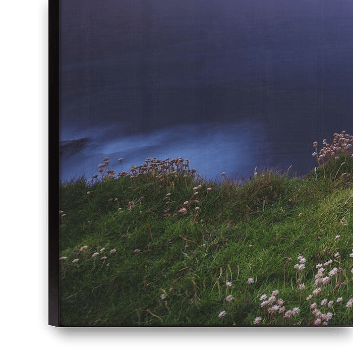 Koop dit landschapskunstwerk Ierland Downpatrick Head op het blauwe uur van Jean Claude Castor op canvas, aluminium dibond, (ingelijste) fotoprint, behang en ArtFrame, op maat geprint in Fine-Art kwaliteit.