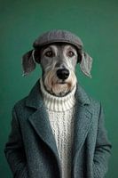 Met zijn zachte blik en opvallende snuit belichaamt de Ierse Wolfshond majestueuze elegantie. De grijze vacht glinstert zachtjes, terwijl de stijlvolle trenchcoat en piekmuts hem een charmante, aristocratische uitstraling geven. Een perfecte mix van waardigheid en karakter, die doet denken aan de traditionele Ierse cultuur.