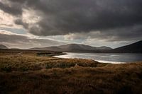 Blacksod Bay in Noordwest Ierland, met op de achtergrond de bergen van Currane. In de herfst verkleurt het gras en de heide op het veengrond naar allerlei tinten bruin. Regenbuien worden afgewisseld met af en toe wat zon, wat het landschap een mystieke sfeer geeft.