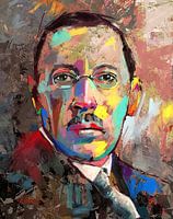 Digitaal handgeschilderd portret van de componist in de stijl van het spontaan realisme.