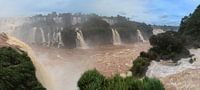 De Iguazú watervallen zijn een waar natuurwonder. Hier stort de Iguazú rivier zich over een breedte van drie kilometer al kolkend in de Paraná rivier. Iguazú ligt op het drielandenpunt van Argentinië, Brazilië en Paraguay. Dit is een panorama van de Braziliaanse zijde.