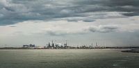 Met de veerboot naar Newcastle. Vanaf het bovendek een mooi uitzicht over de haven industrie van Ijmuiden en de tijd om een panoramafoto te maken van meerdere foto's. Ook de bewolking speelt goed mee om een wat rauwe uitstraling te maken.