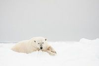 Rondreis gemaakt langs Spitsbergen, Svalbard in de zomer. We hadden het geluk om meerdere ijsberen te spotten op het pakijs. Bijzonder om te zien hoe de ijsberen zich staande houden in een wereld vol ijs en sneeuw. Deze beer lag lekker te relaxen in de sneeuw tijdens een sneeuwbui.