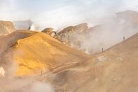 Op een mistige en zonnige morgen in Kerlingarfjoll, IJsland