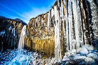 Bij deze waterval heersen ijzige omstandigheden. Ijspegels, bevroren water en ijzige wind pauzeren hier en verrijken deze compositie.