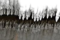 Ijspegels, winter 2021, weerspiegeling in het water aan een vlonder, Groote Wielenplas te Rosmalen
