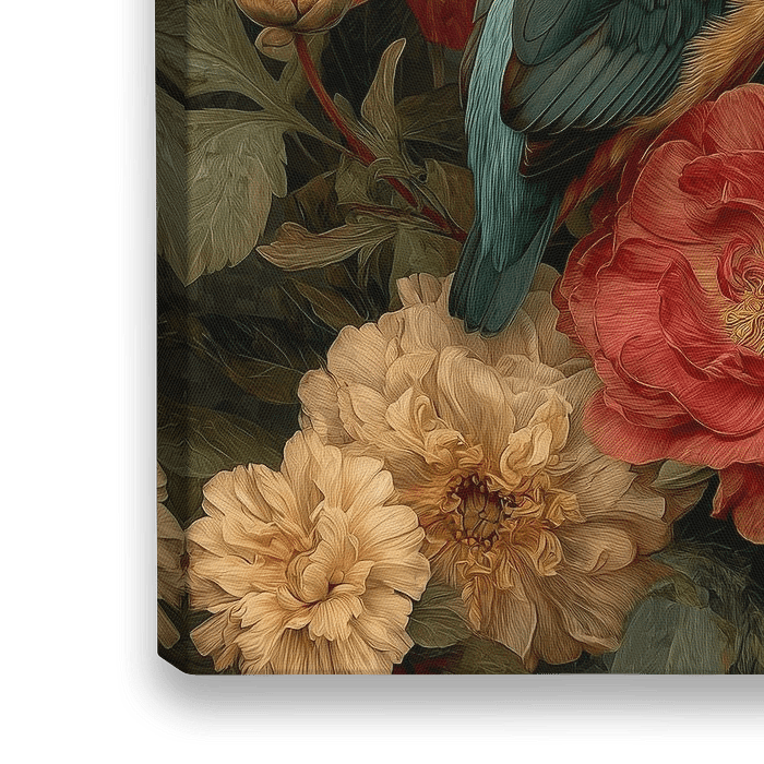 Koop dit bloemen kunstwerk Ijsvogel tussen Bloemenpracht – Vintage Botanisch Portret van But First Framing op canvas, aluminium dibond, (ingelijste) fotoprint, behang en ArtFrame, op maat geprint in Fine-Art kwaliteit.
