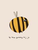 Deze minimalistische en hartverwarmende poster zegt alles in één zin: "Ik ben graag bij je." De combinatie van de speelse bij-illustratie en de lieve woordspeling maakt dit een perfect cadeau voor iemand die je dierbaar is. De illustratie is eenvoudig maar krachtig, met een schattige bij die de boodschap nog zoeter maakt.