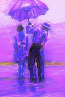 Pasteltekening/ Pastelkrijtjes / Pastelpotlood /Handgeschilderd / Inspiratie / Geïnspireerd / Jack Vettriano / Schilder /Zon / Strand / Zee / Parasol /Butler / Man / Vrouw / Figuratieve kunst / Mysterieus / Paars / Blauw /
