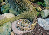 Schors dat doordraait, vlak bij het Muiderslot staat een boom aan het water. De boom wringt zijn wortels tussen de stenen. Een van zijn wortels vormt een spiraal..... is het echt of niet ?