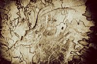 In deze boomstam zie ik Nederland verbeeld. Vanaf midden bovenaan zijn daar de Wadden en een beetje Denemarken, daaronder uitlopend in de kustlijn naar Zeeland met daaronder de Belgische en Franse kust. Met een beetje verbeelding zie je ook het achterland (Duitsland) met de Elbe bij Hamburg (rechts van het midden). Hoe langer ik er naar kijk, zie ik steeds meer een Middeleeuwse landkaart.