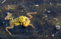 Kikkers zoeken aandacht van elkaar in een ven in het Fochteloërveen in de buurt van Veenhuizen