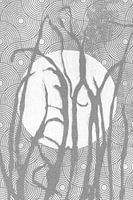 Ikigai. Gras en Maan. Abstracte minimalistische Zen kunst. Japandi stijl I van Dina Dankers