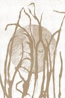 Wikipedia: "Ikigai (生き甲斐, lit. 'een reden om te zijn') is een Japans concept dat verwijst naar iets dat een persoon een gevoel van doel geeft, een reden om te leven." Moderne abstracte minimalistische kunst. Geïnspireerd door Japanse kunst, Scandinavische natuur en Zen-filosofie. Neutrale aardetinten en wit palet, abstracte texturen en eenvoudige geometrische vormen. Zen, Japandi, Minimalistisch, Scandinavisch, Industriële interieurstijl.