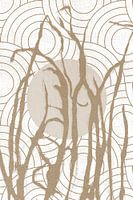 Wikipedia: "Ikigai (生き甲斐, lit. 'een reden om te zijn') is een Japans concept dat verwijst naar iets dat een persoon een gevoel van doel geeft, een reden om te leven." Moderne abstracte minimalistische kunst. Geïnspireerd door Japanse kunst, Scandinavische natuur en Zen-filosofie. Neutrale aardetinten en wit palet, abstracte texturen en eenvoudige geometrische vormen. Zen, Japandi, Minimalistisch, Scandinavisch, Industriële interieurstijl.
