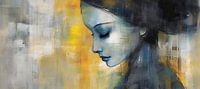 Details: portret, vrouw, modern, abstract, gezicht, kunst, minimalisme, blauw, geel, grijs