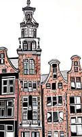 Een digitale illustratie gemaakt op basis van de grachtenpanden van Nederland.