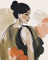 Illustratie: modern portret. Dit portret van een jonge vrouw is opgemaakt in zorgvuldig op elkaar afgestemde kleuren. Helemaal van nu en een echte blikvanger in je interieur.