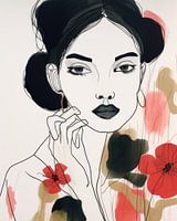 Illustratie: modern portret. Dit portret van een jonge vrouw is opgemaakt in zorgvuldig op elkaar afgestemde kleuren. Helemaal van nu en een echte blikvanger in je interieur.