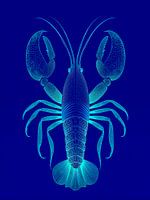 Dit digitale kunstwerk toont een abstracte weergave van een kreeft.