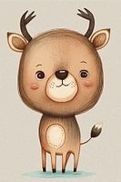 Een illustratie van een baby hertje in pastelkleuren. Geschikt voor de kinderkamer. Kies zelf de maat en het materiaal van deze unieke print. Snelle levering en hoge kwaliteit.