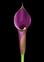 Dompel jezelf onder in de betoverende schoonheid van deze Elegant Purple Calla Lily Illustratie, een opvallend digitaal kunstwerk dat de natuurlijke gratie en verfijning van de iconische calla leliebloem vastlegt. Met rijke paarse tinten die naadloos overgaan in zachte groene en bruine tinten symboliseert dit kunstwerk elegantie, schoonheid en wedergeboorte. Elk detail van dit kunstwerk, van de vloeiende rondingen van de bloemblaadjes tot de levendige gele meeldraden, roept een gevoel van sereniteit en verfijning op.