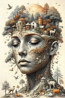 Deze serie heeft verschillende gezichtsvariaties; baby, kinderen, man, vrouw... altijd in bruin, beige, oker, geel en oranje tinten, om de link met de aarde en de natuur te versterken, wat het idee is achter deze creatie. Natuurlijk met wat surrealistische elementen om mijn verbeelding te respecteren en mijn dosis waanzin te omarmen…
