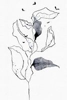 Dit geeft mij de inspiratie om mijn tekeningen te maken, in dit geval geabstraheerde bladeren aan een tak.