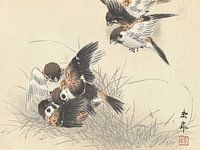 Imao Keinen (1845-1924) was een belangrijke Japanse kunstenaar uit het Meiji-tijdperk, bekend om zijn gedetailleerde en naturalistische afbeeldingen van vogels en bloemen. Hij behoorde tot de "Nihonga" school, een traditionele Japanse schilderstijl die westerse technieken combineerde met klassieke Japanse esthetiek. Keinen was gefascineerd door de schoonheid van de natuur in al haar facetten en legde deze vast in fijne penseelstreken en levendige kleuren. Zijn werken worden gekenmerkt door een harmonieuze compositie en grote precisie, en weerspiegelen zowel wetenschappelijke observatie als artistieke gevoeligheid.