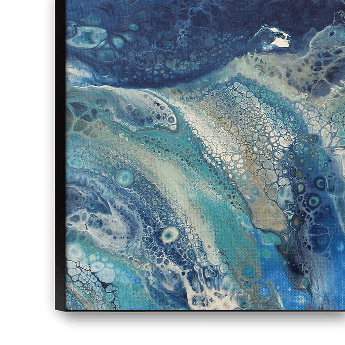 Abstract schilderij met waterval van vloeiende kleuren die samen een energiek en dynamisch beeld vormen.