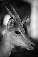 Impala portret, gefotografeerd in zwart wit met een prachtige onscherpe achtergrond.